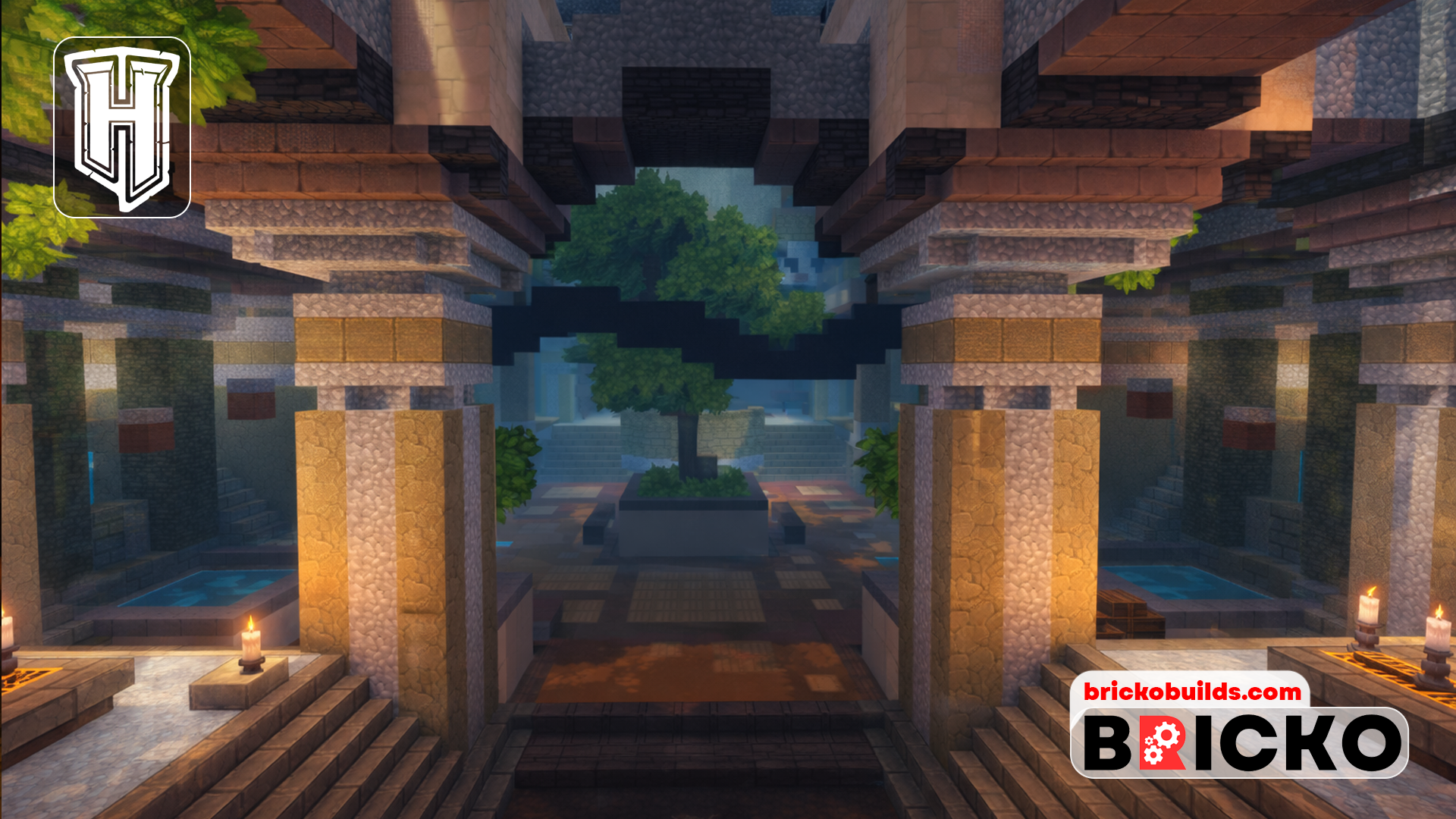 This map showcases striking stone architecture, cinematic lighting, and a rich, immersive atmosphere that looks polished and compelling for any high-quality multiplayer server.